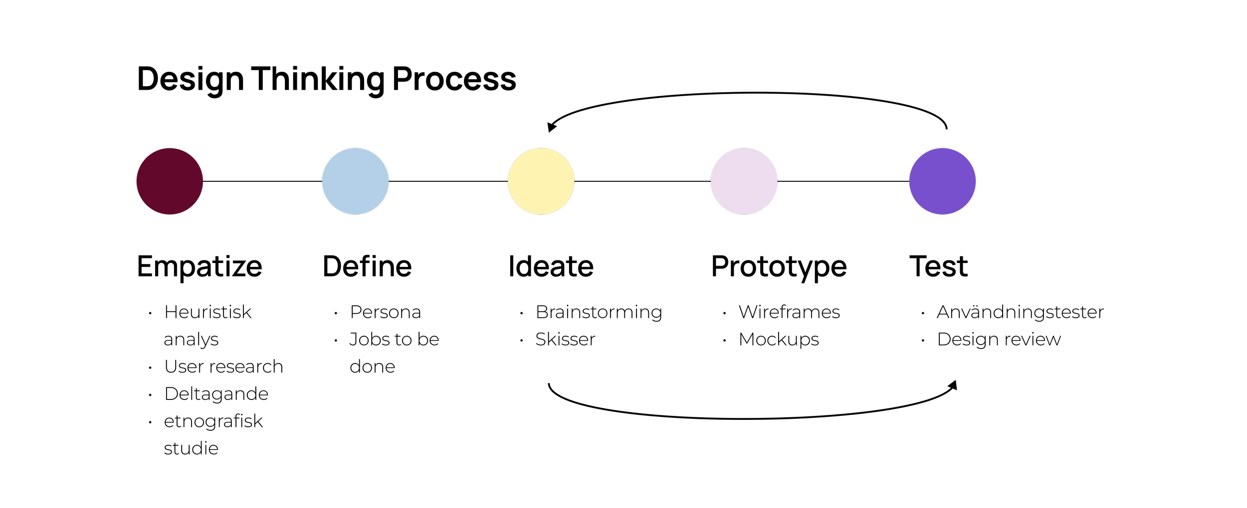 Metoder: Heuristisk analys, Design Thinking Process, User Research, användarintervjuer, Användbarhetstester, Wireframing, Prototyping
