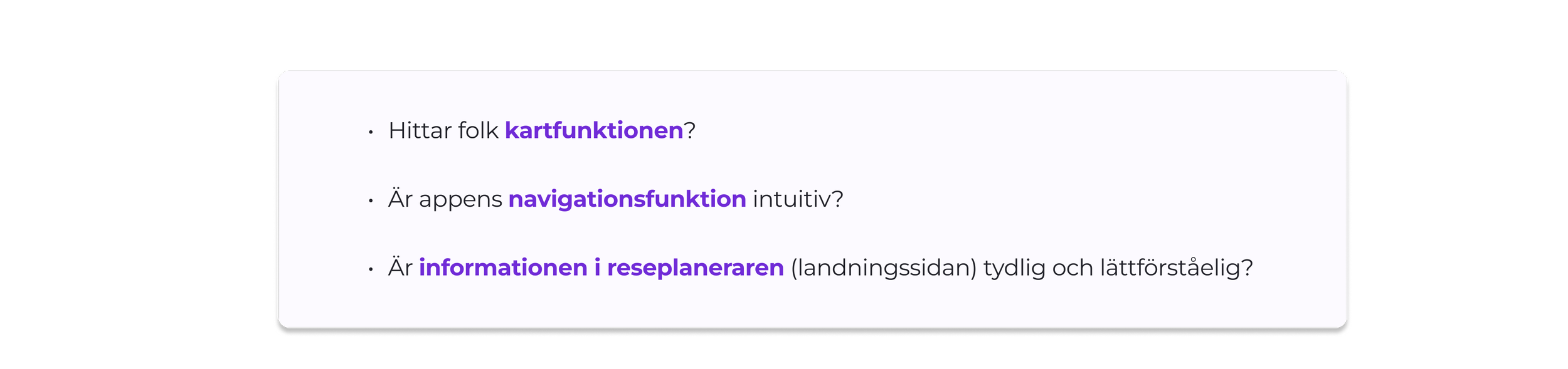 Insikter: Appen används främst till att köpa biljett och att hitta fram dit du vill. Det sistnämnda är där problemen uppstår, och det vi fokuserat på att hitta förbättringsmöjligheter för.